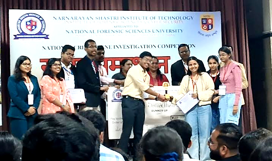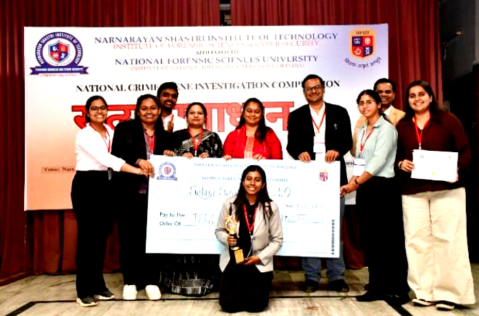 The Narnarayan Shastri Institute of Technology – Institute of Forensic Science and Cyber Security (NSIT-IFSCS), Jetalpur, Ahmedabad, successfully organized “Satya Samadhan 2.0,” a National-level Crime Scene and Forensic Investigation event that witnessed enthusiastic participation with 45 teams consisting of 225 students across India. The event commenced with lighting of the lamp by esteemed Board of Governors members Babulal Patel, Dharmesh Vandra,  Dr. Surbhi Mathur ( NFSU, Gandhinagar) , Dr. Sushil Goswami (GNLU, Gandhinagar), Prof. (Dr.) Sailesh Iyer (Principal,  NSIT-IFSCS) and  Sanjay Sharma ( Campus Director,  NSIT-IFSCS).