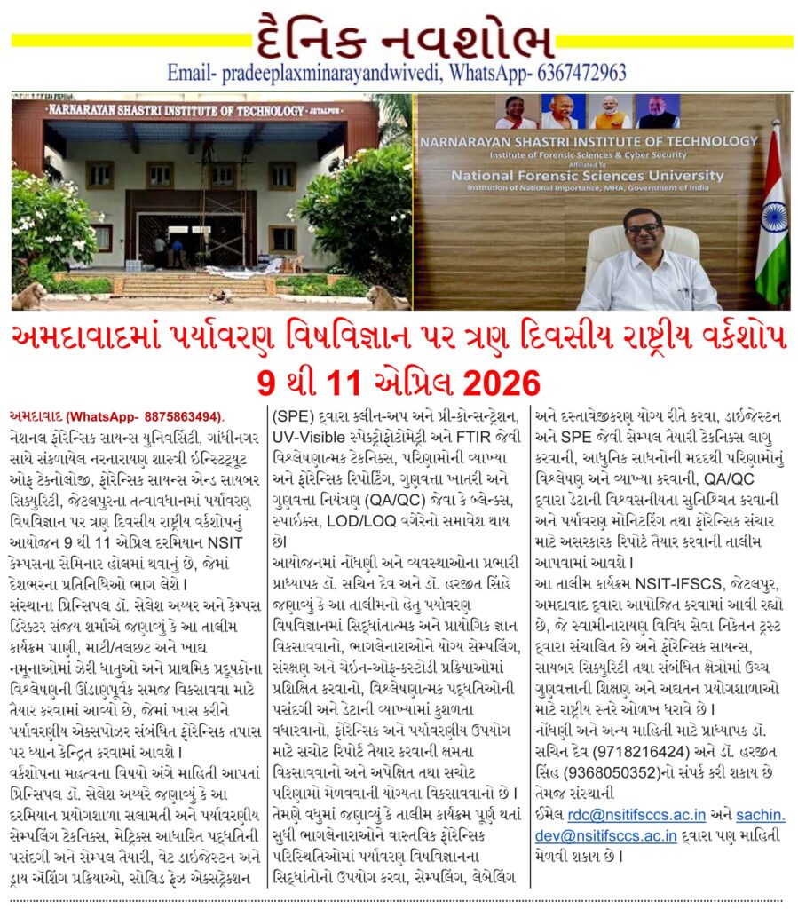 Pradeep Dwivediઅમદાવાદમાં પર્યાવરણ વિષવિજ્ઞાન પર ત્રણ દિવસીય રાષ્ટ્રીય વર્કશોપ 9 થી 11 એપ્રિલ by BollywoodBazarGuideApril 7, 2026April 7, 20260 Share1